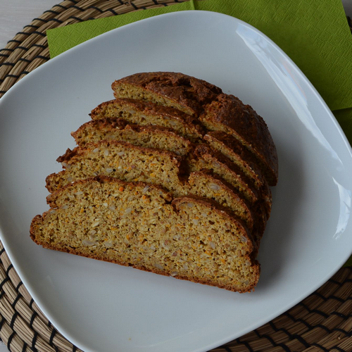 Dieses Karotten-Körner-Brot ist ein echter Klassiker und kommt seit mehr als 10 Jahren regelmäßig auf unserem Tisch. In dieser Zeit hat das Rezept natürlich einige Veränderungen erfahren, vor allem in der Zusammensetzung der Körnermischung. Je nachdem, was die Vorräte gerade hergeben, hat sich, statt der 100 g Goldleinsamen und der 4 Eßl. Sonnenblumenkerne, auch die folgende Mischung bewährt: